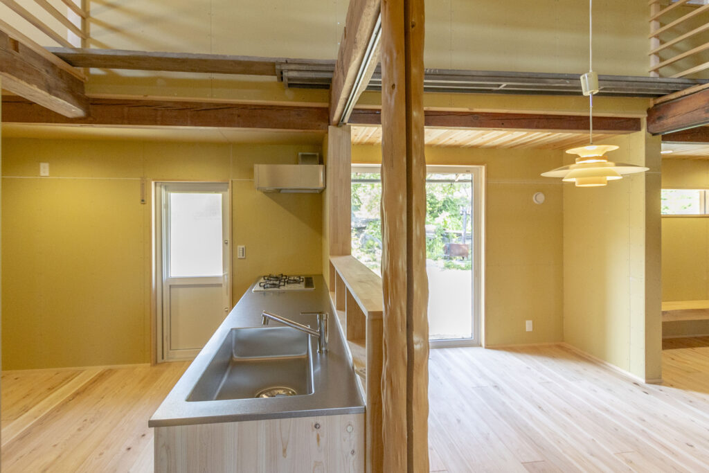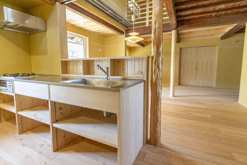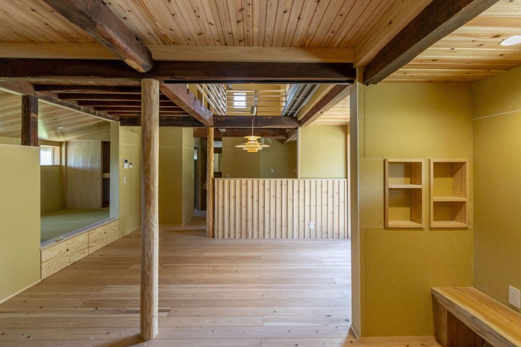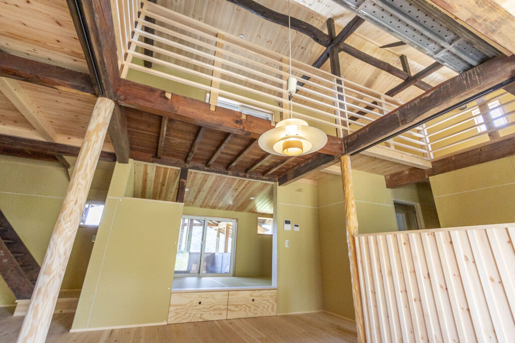 柱・梁はワイヤーで家起こしし、石場建てだった基礎は新しく打ち直し、リノベーション工事しました。